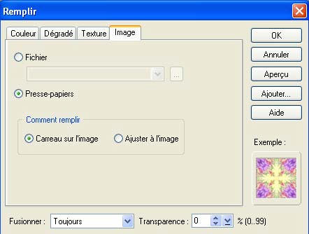 marque clipboard (em sample, embaixo, à direita, você poderá ver sua imagem), OK: